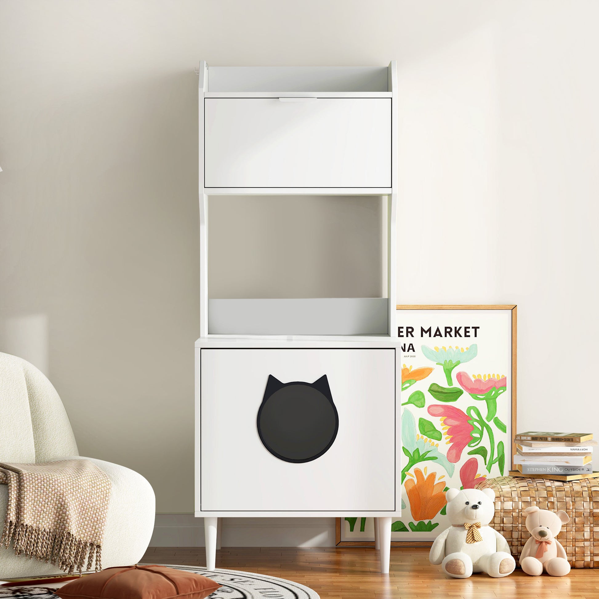 Litter Box Enclosure with Shelves and Doors White Wooden Hidden Cat Litter Box Furniture Industrial Indoor Cat House Washroom Pet Crate Storage Cabinet