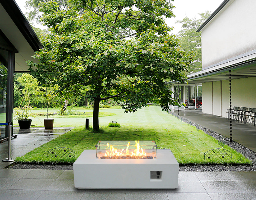 52 Inch Outdoor Concrete Propane gas rectangle Fire Pit table in Antique white color