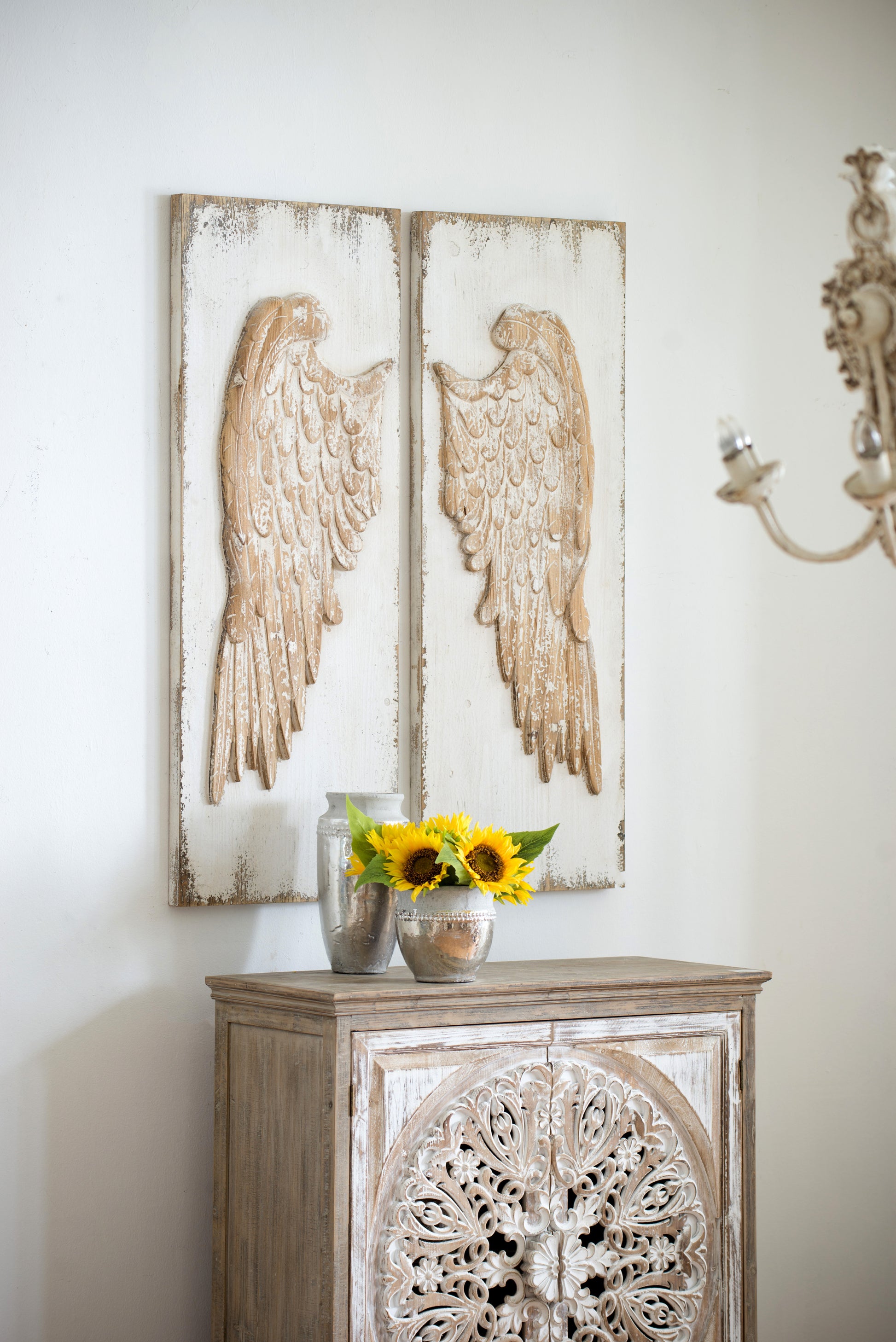 Set of 2 Feather Wing Wall Panels with Distressed White Finish, Rectangle Hanging Wall Art, 42' x 15.5'