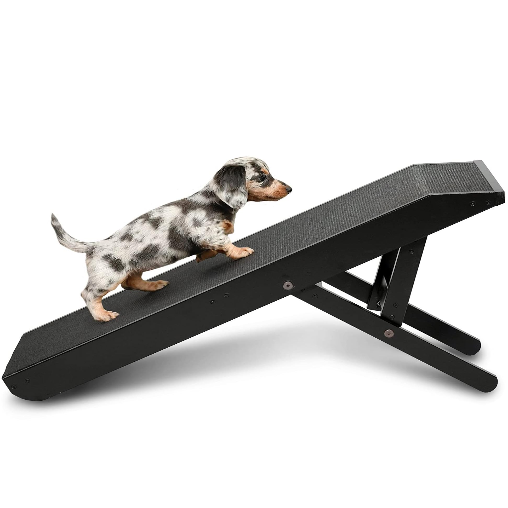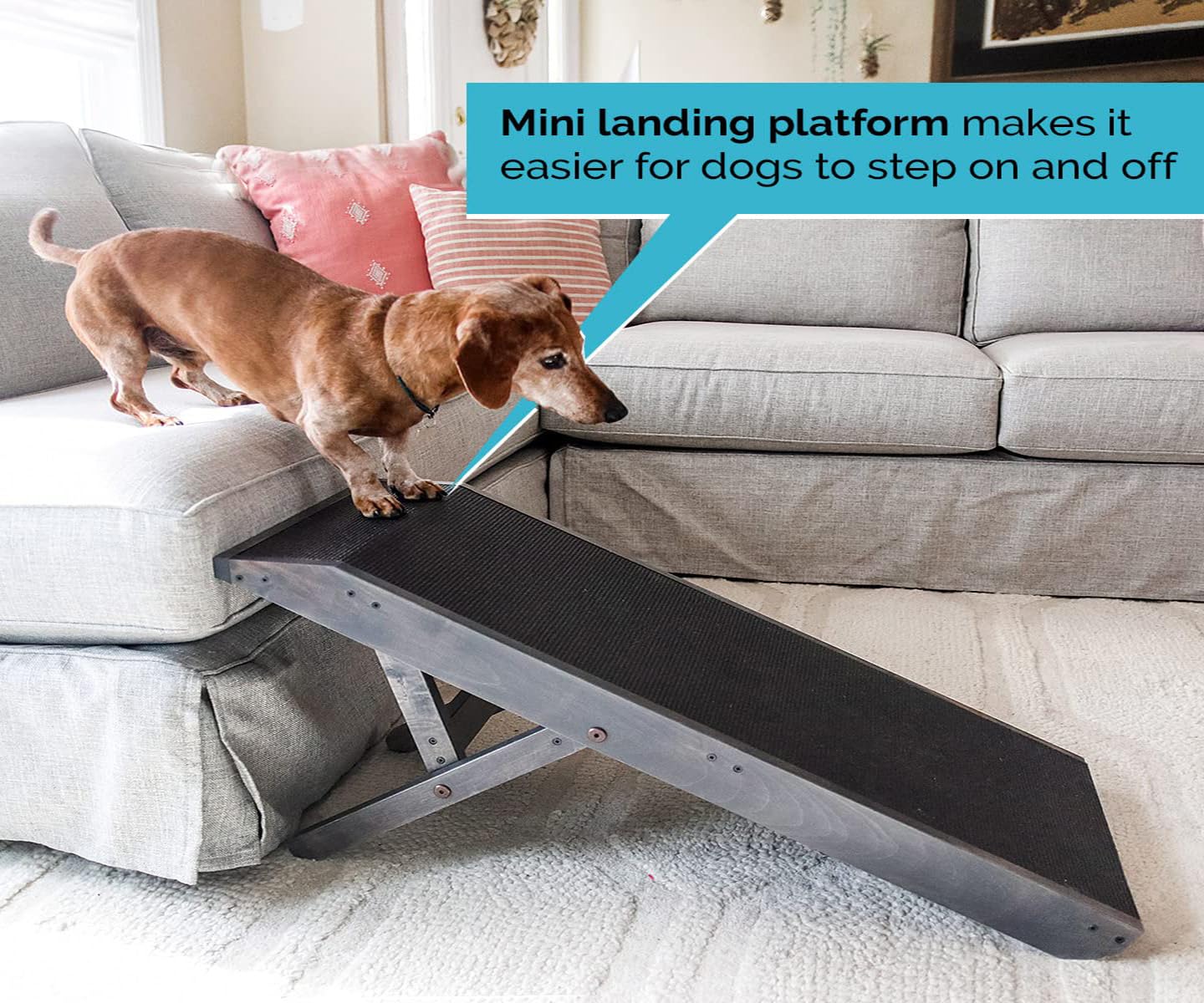24" H 47" L Adjustable Dog Ramp for Bed Small Dog & Large Dogs - Folding Dachshund Ramp Hardwood Pet Ramp for Couch with Platform Top & Anti-Slip Surface - Dog Ramps for Medium Dogs & Old Cats