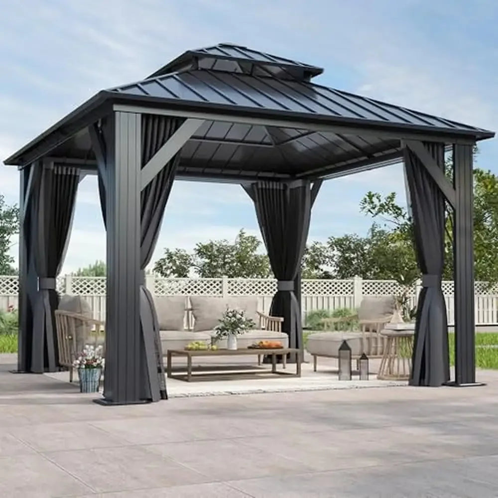 Outdoor Hardtop Gazebo Galvanized Iron Top Aluminum Frame Double Vented Netting Spacious Room Easy Assembly Sturdy Support