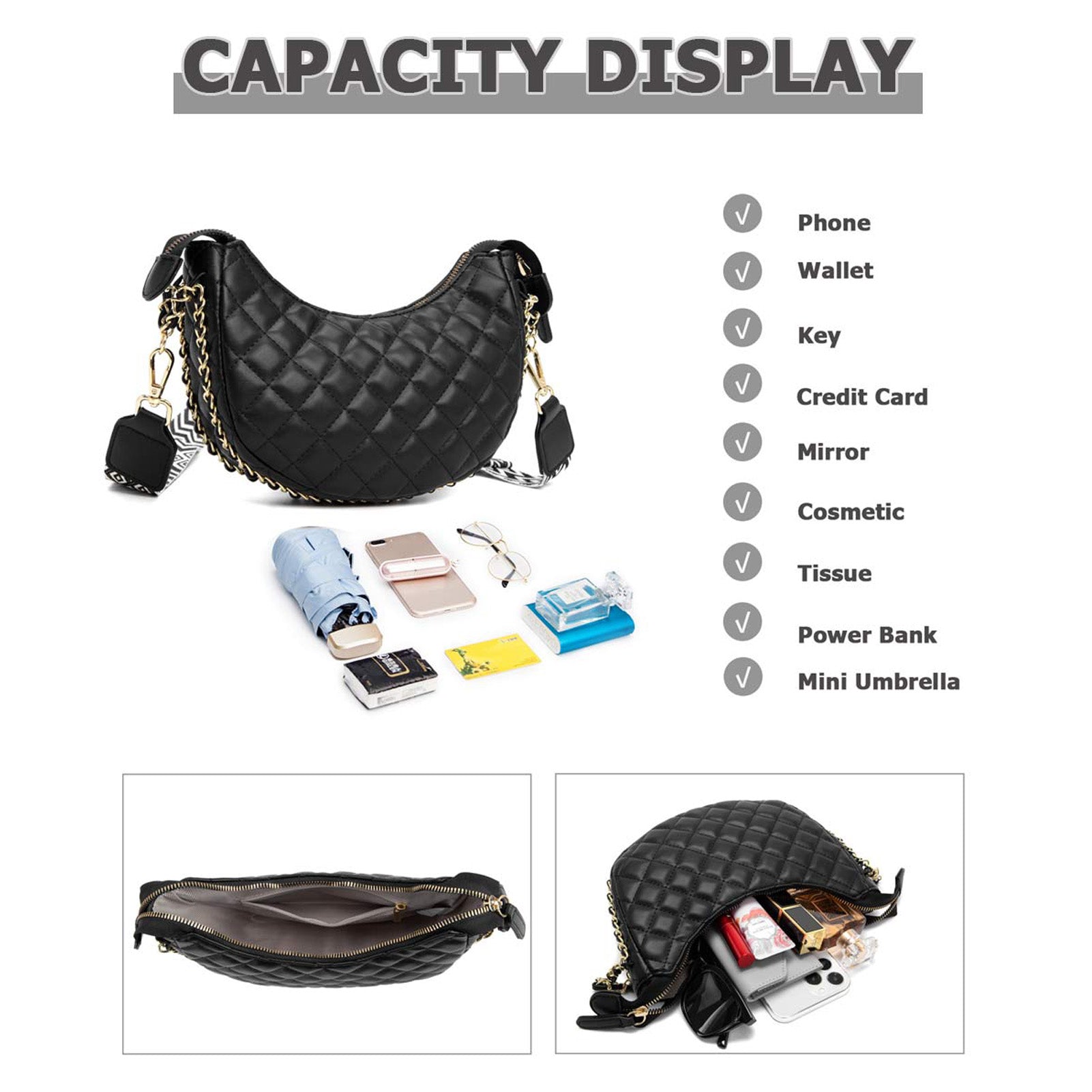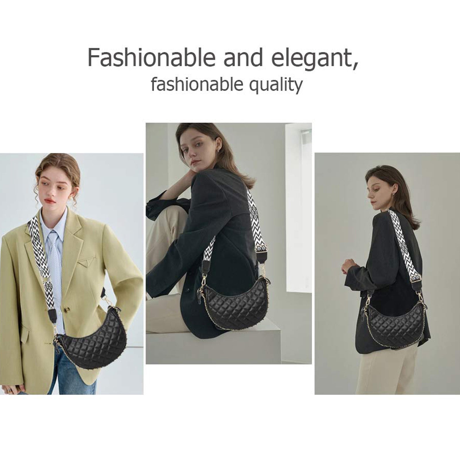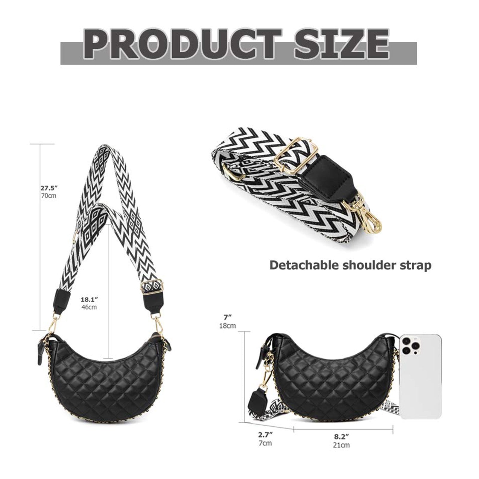 Small Crescent Crossbody Bags for Women Leather Sling Crossbody Purse Shoulder Bag with Adjustable Wide Strap