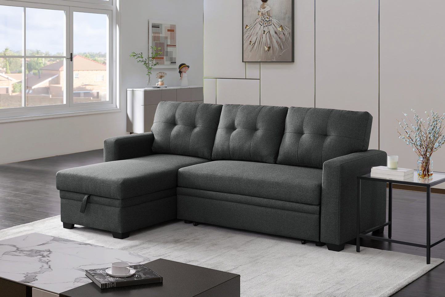 [SantaChoice] Upholstered Pull out Sectional Sofa with Chaise