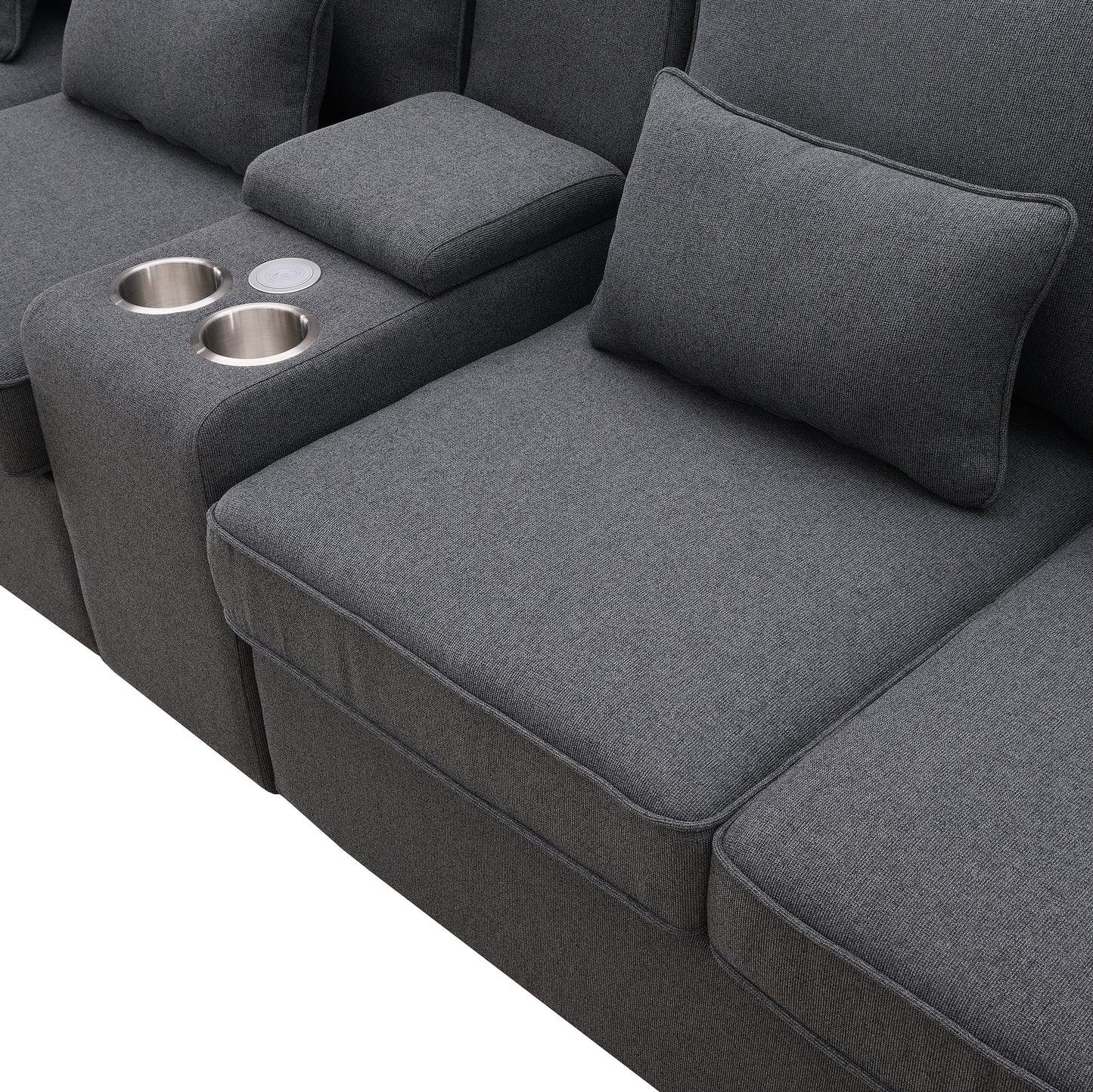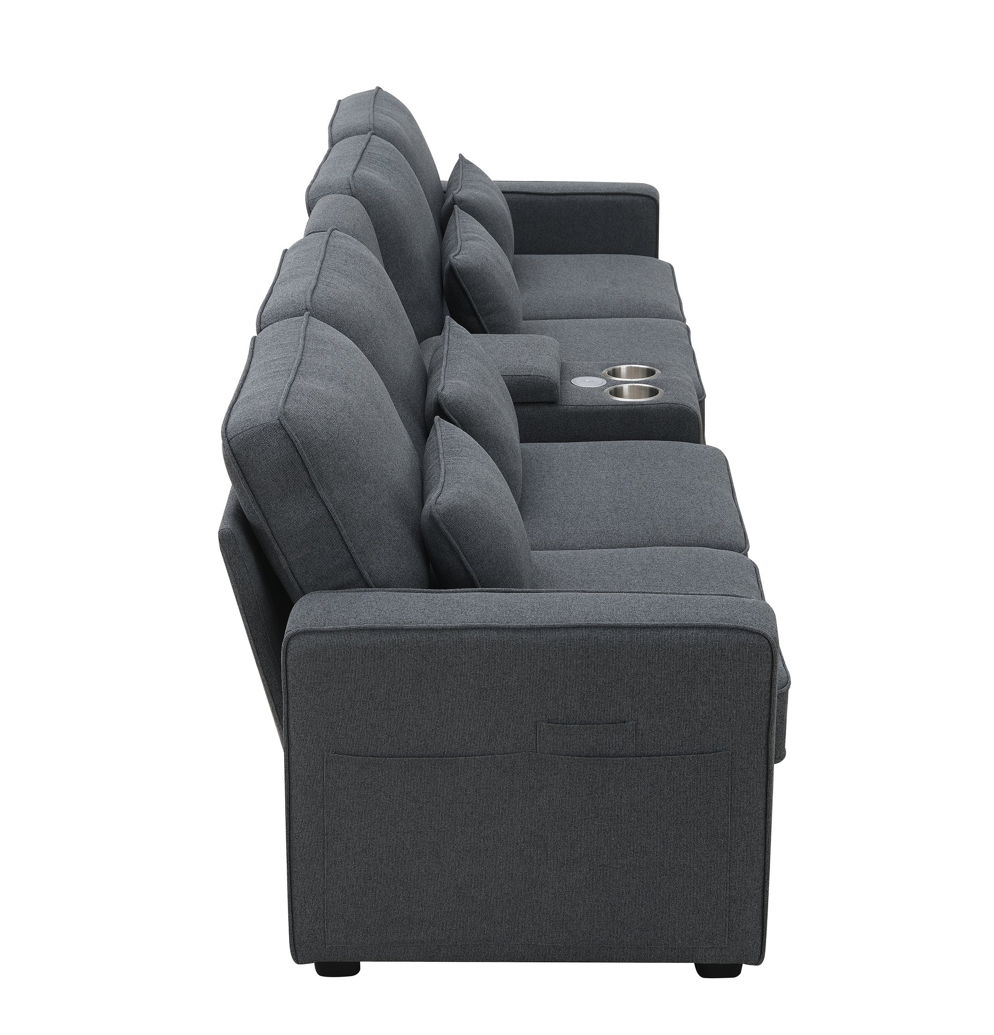 - More Storage Space: To make the environment look neater,the sofa has a console, two cup holders, and some storage pockets on the side for magazines or phones.