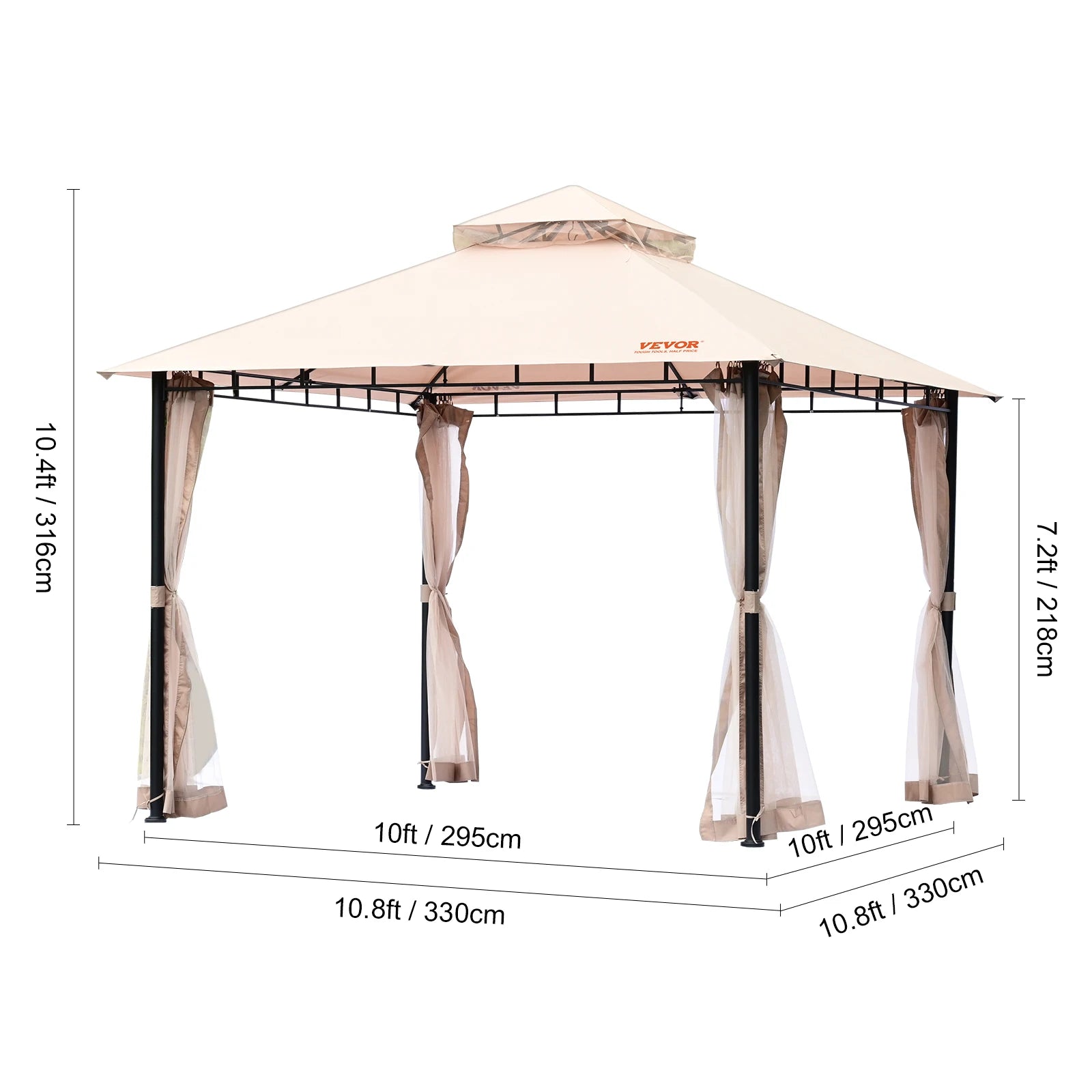 VEVOR 11x11ft/10x10ft/10x13ft Portable Gazebo PU Coated 250D Garden Market Waterproof Collapsible Canopy Party Tent for Outdoor